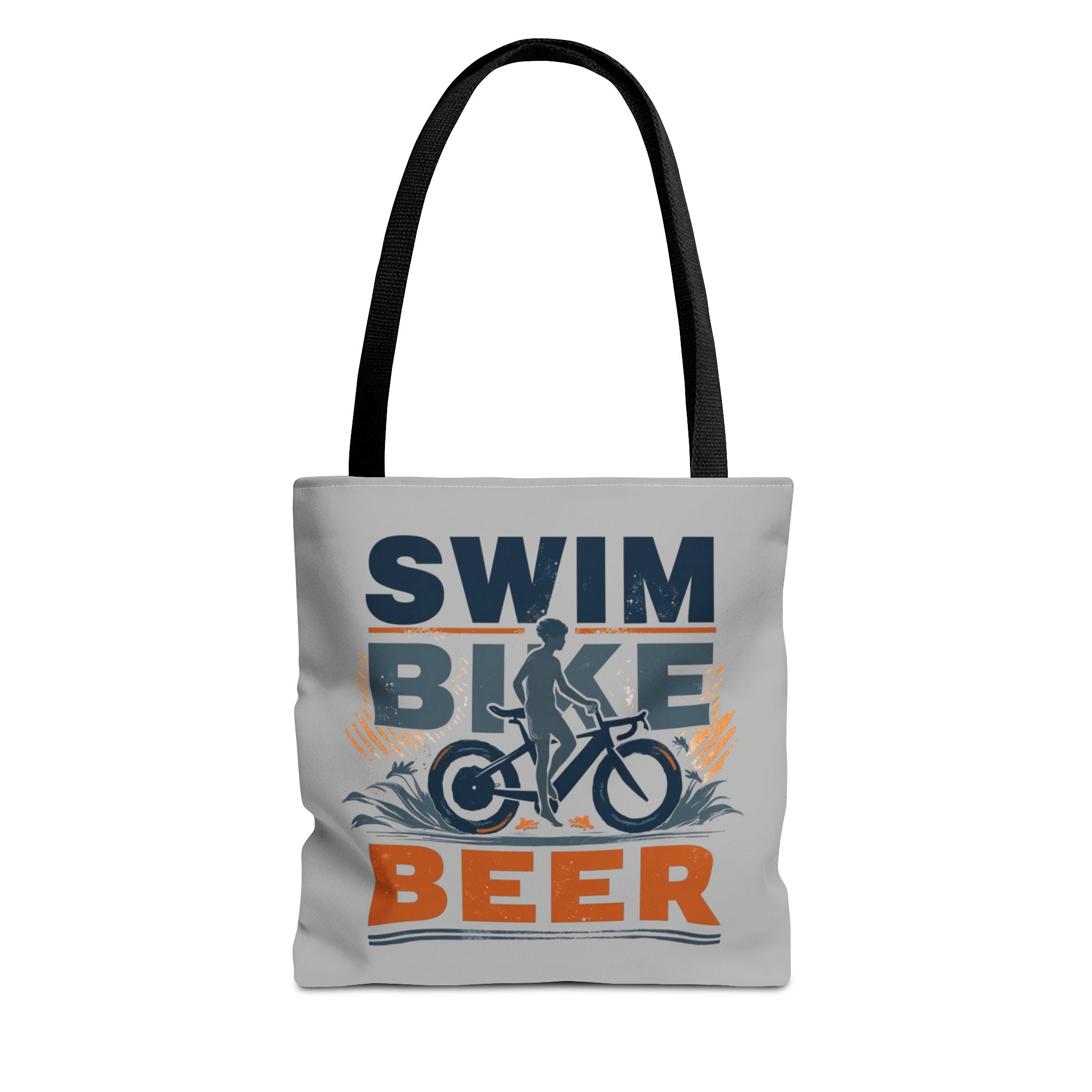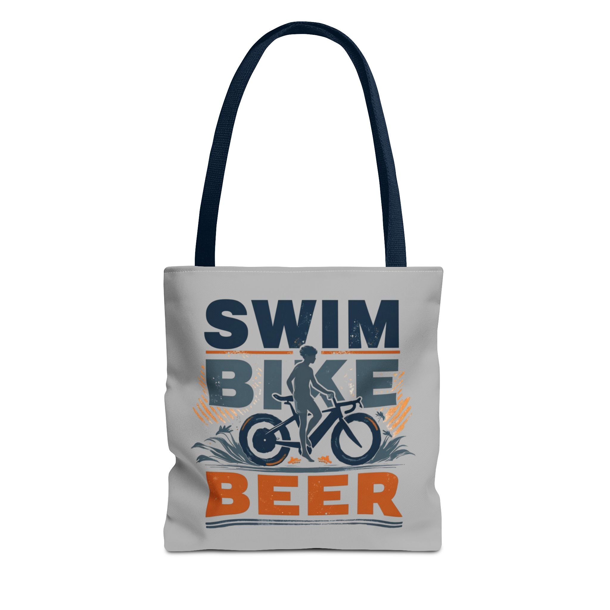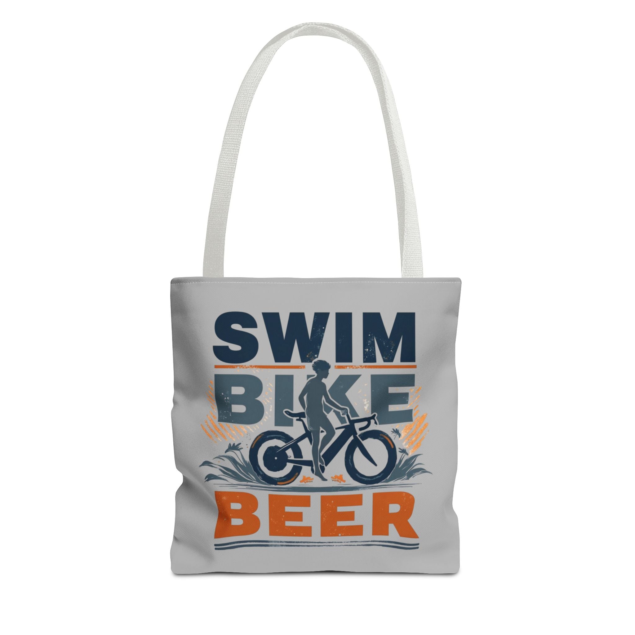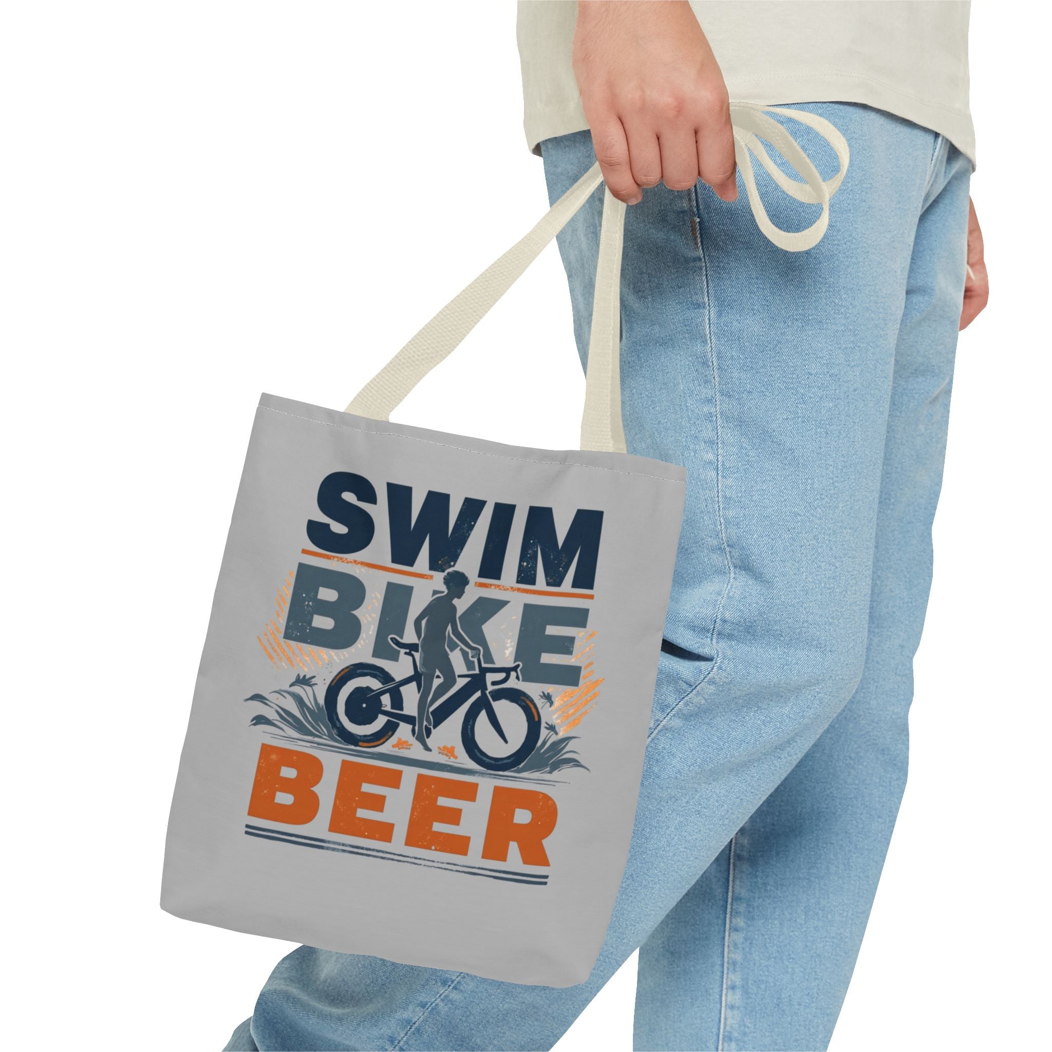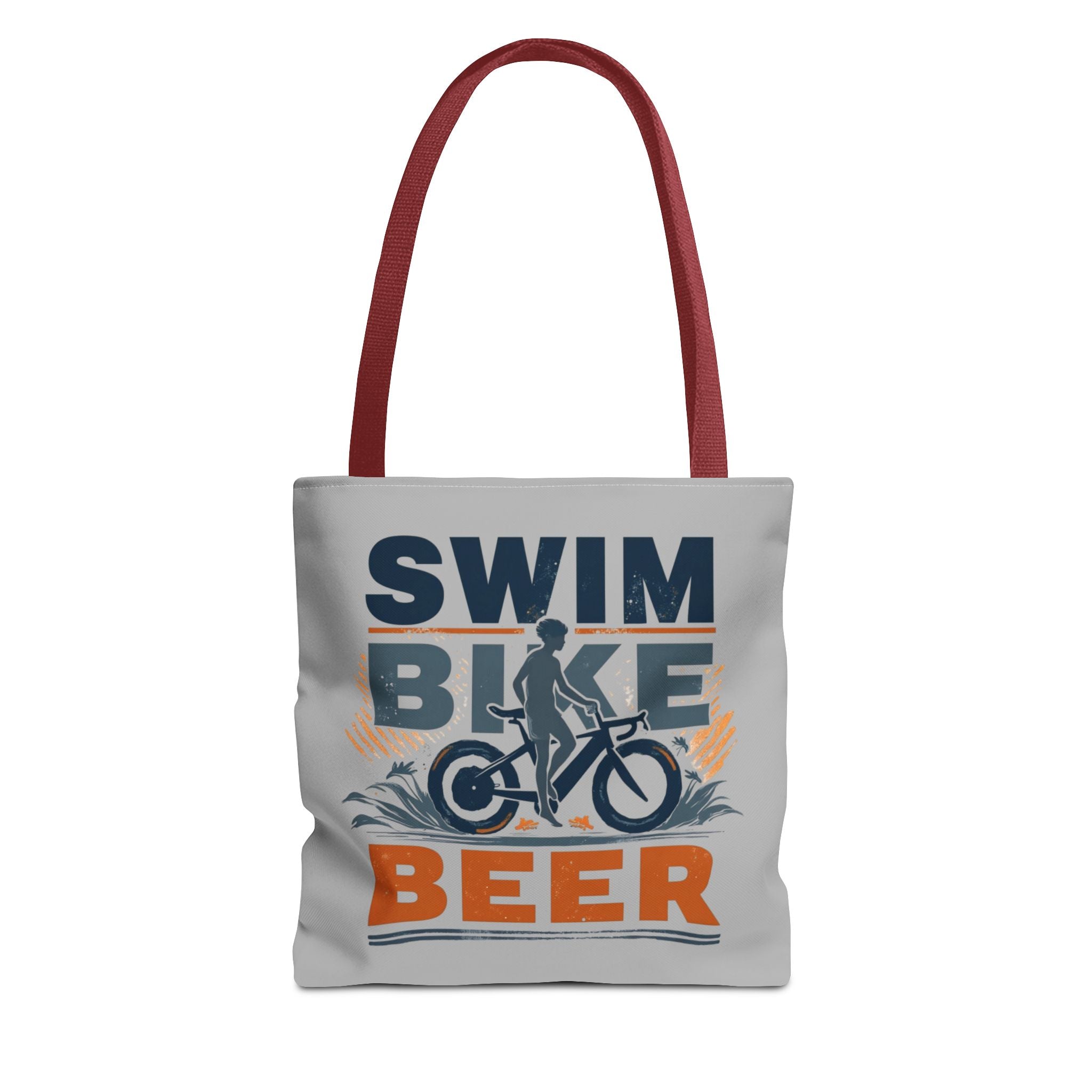 Triathlon Tote Bag - Swim Bike Beer Graphic 100% Polyester Gym & Beach Carryall (13x13x3) Non-Woven Laminated Interior
