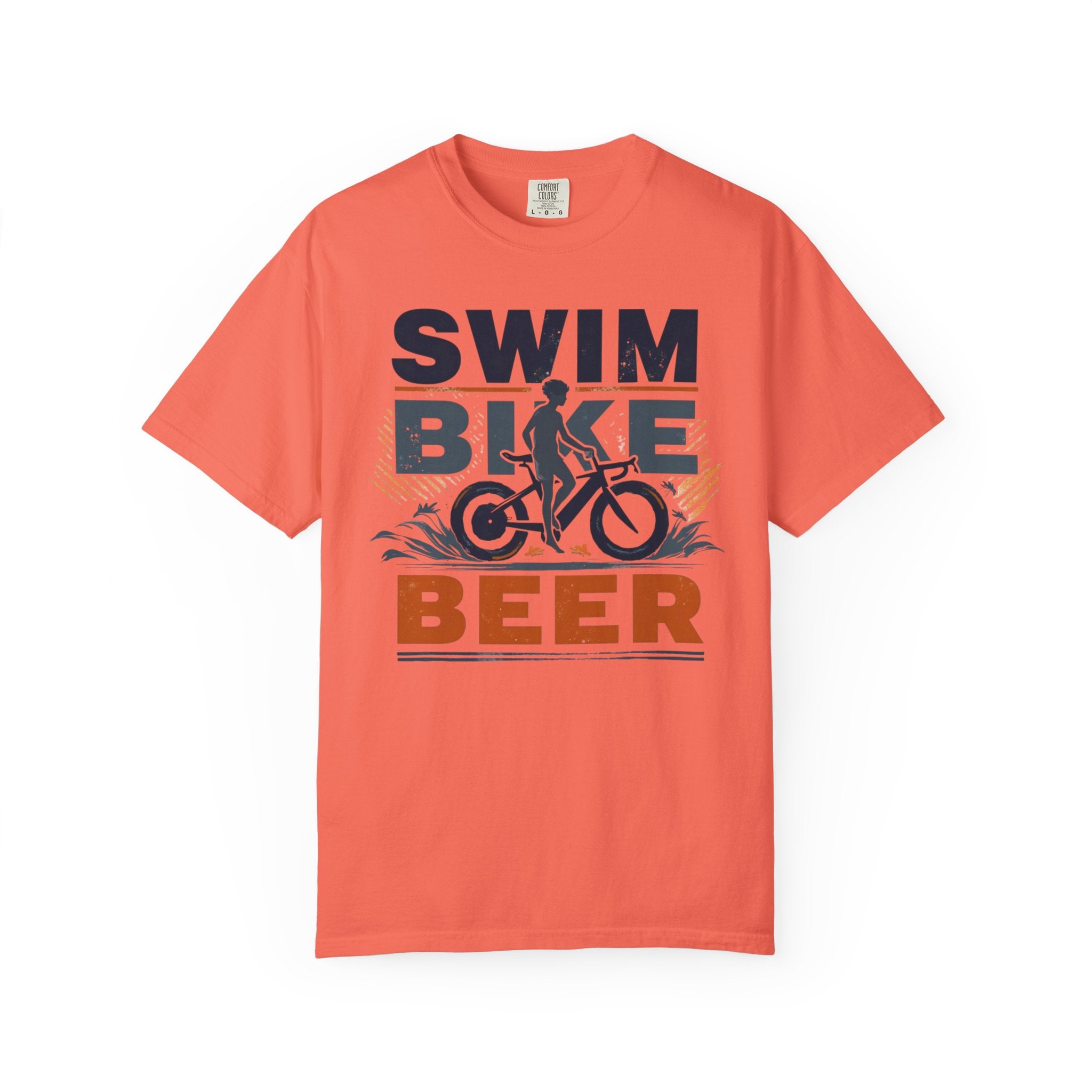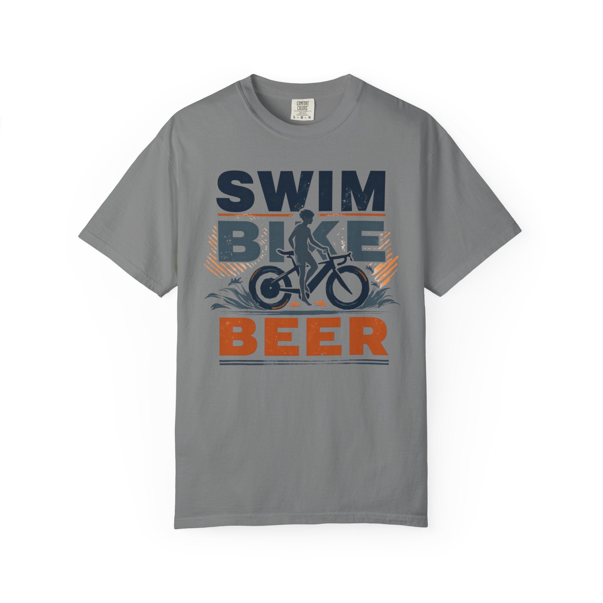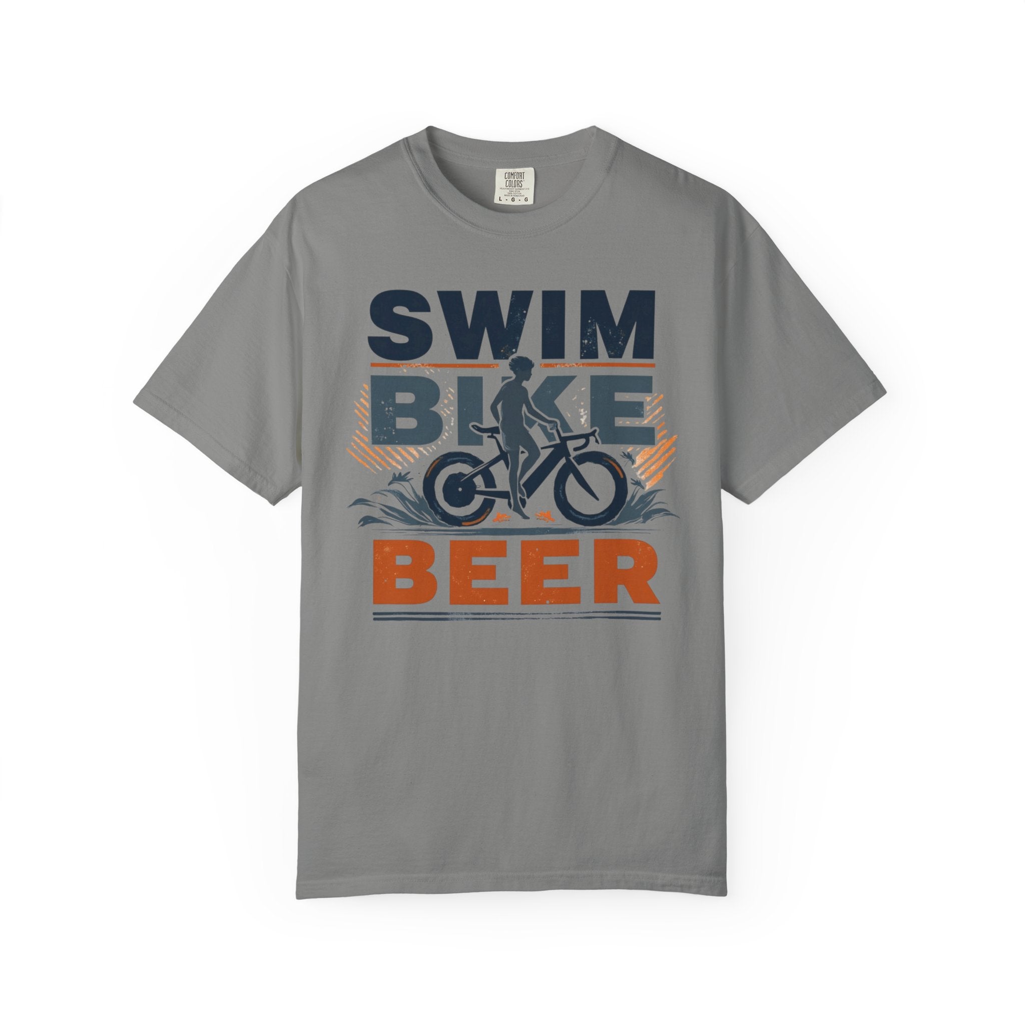 Unisex Swim Bike Beer Casual Cotton T-Shirt - Comfortable Garment-Dyed Tee for Cyclists & Athletes, Perfect Summer Wear & Gift