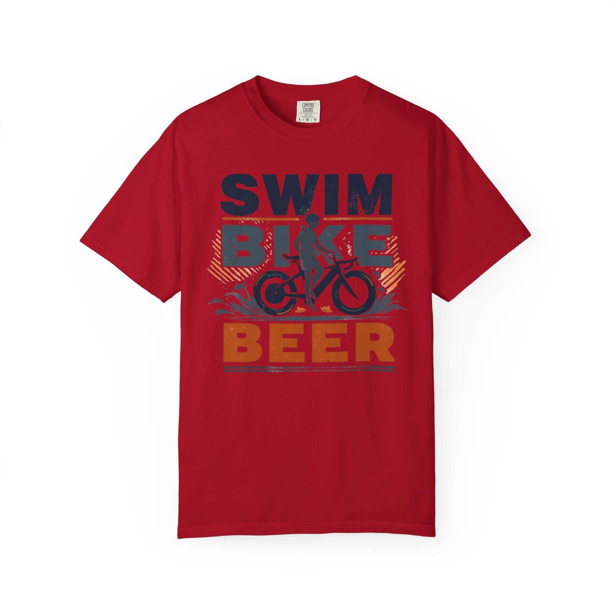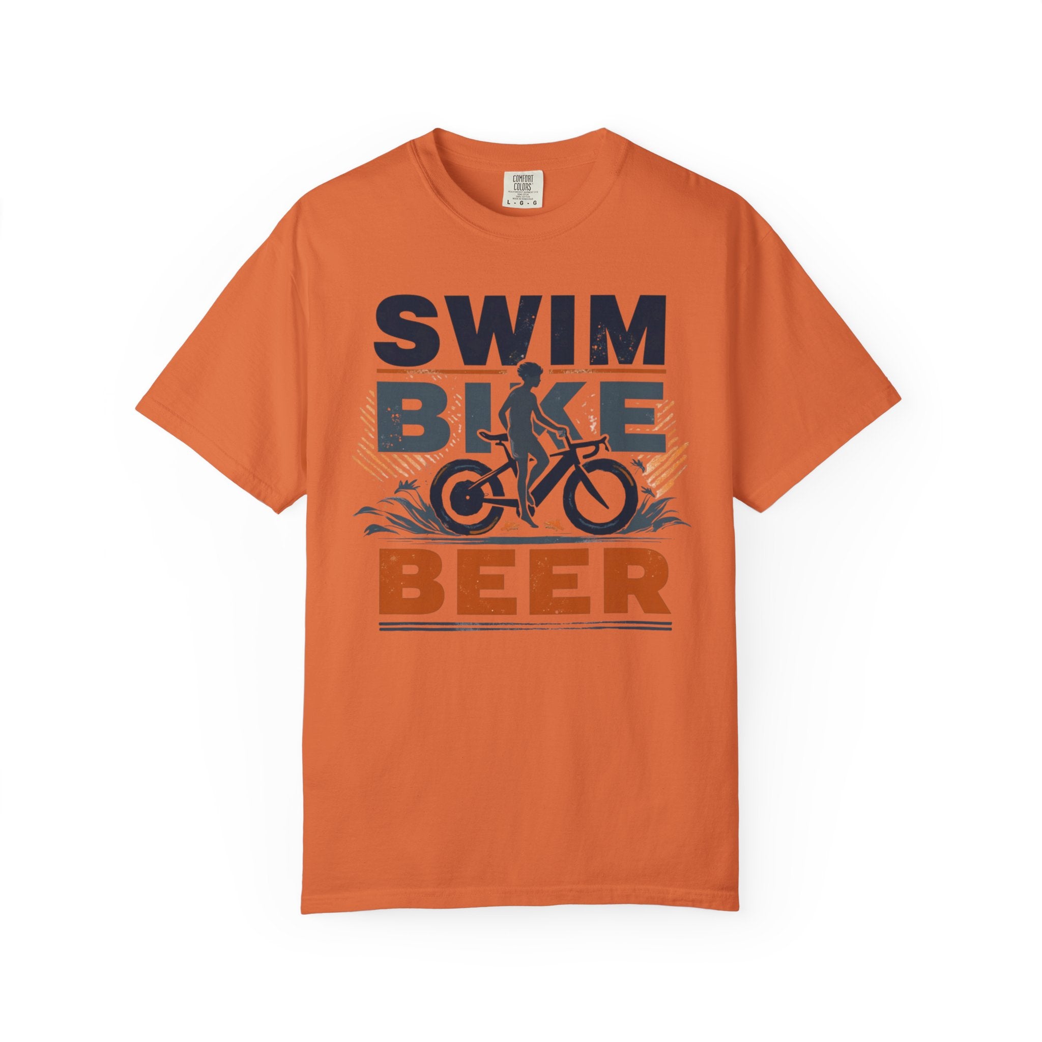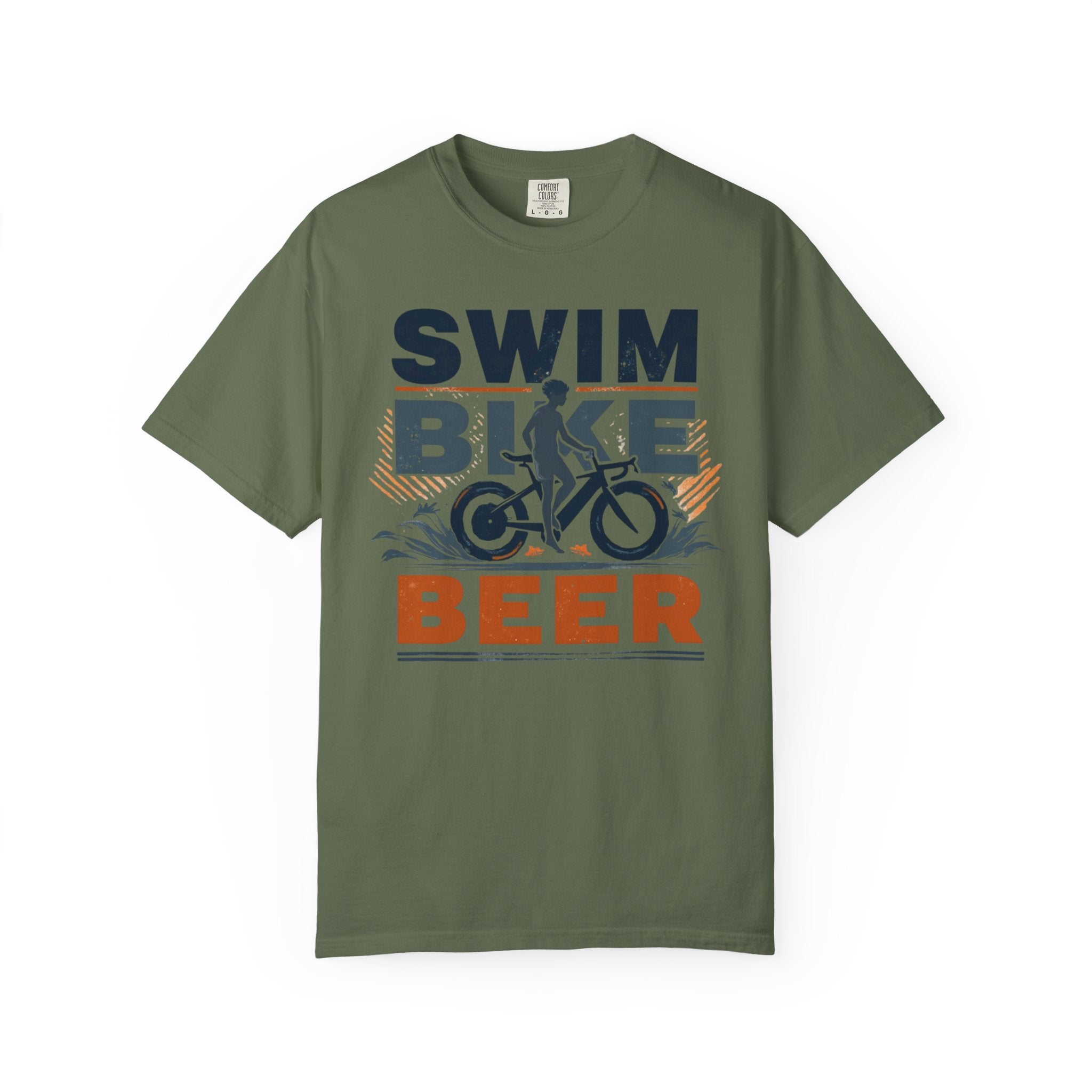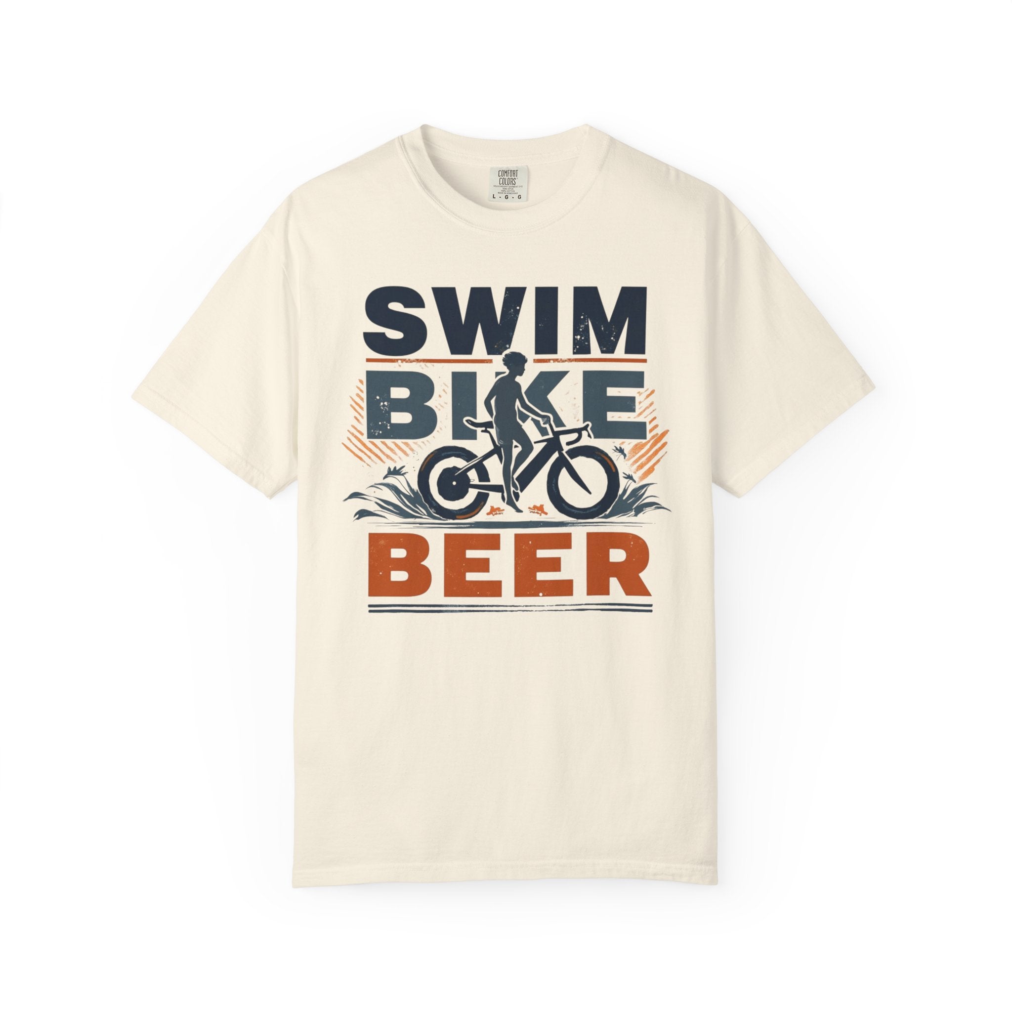 Unisex Swim Bike Beer Casual Cotton T-Shirt - Comfortable Garment-Dyed Tee for Cyclists & Athletes, Perfect Summer Wear & Gift