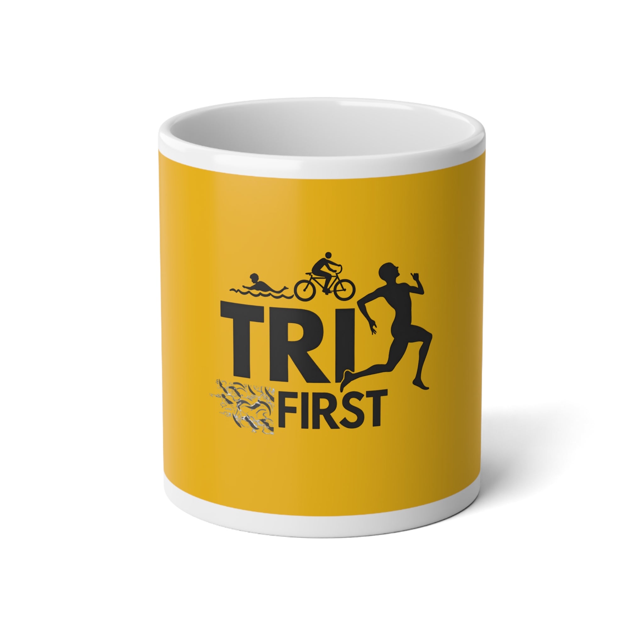 Triathlon 20oz Ceramic Mug - Tri First (Swim-Bike-Run) | ORCA Full-Wrap Glossy, Microwave & Dishwasher Safe