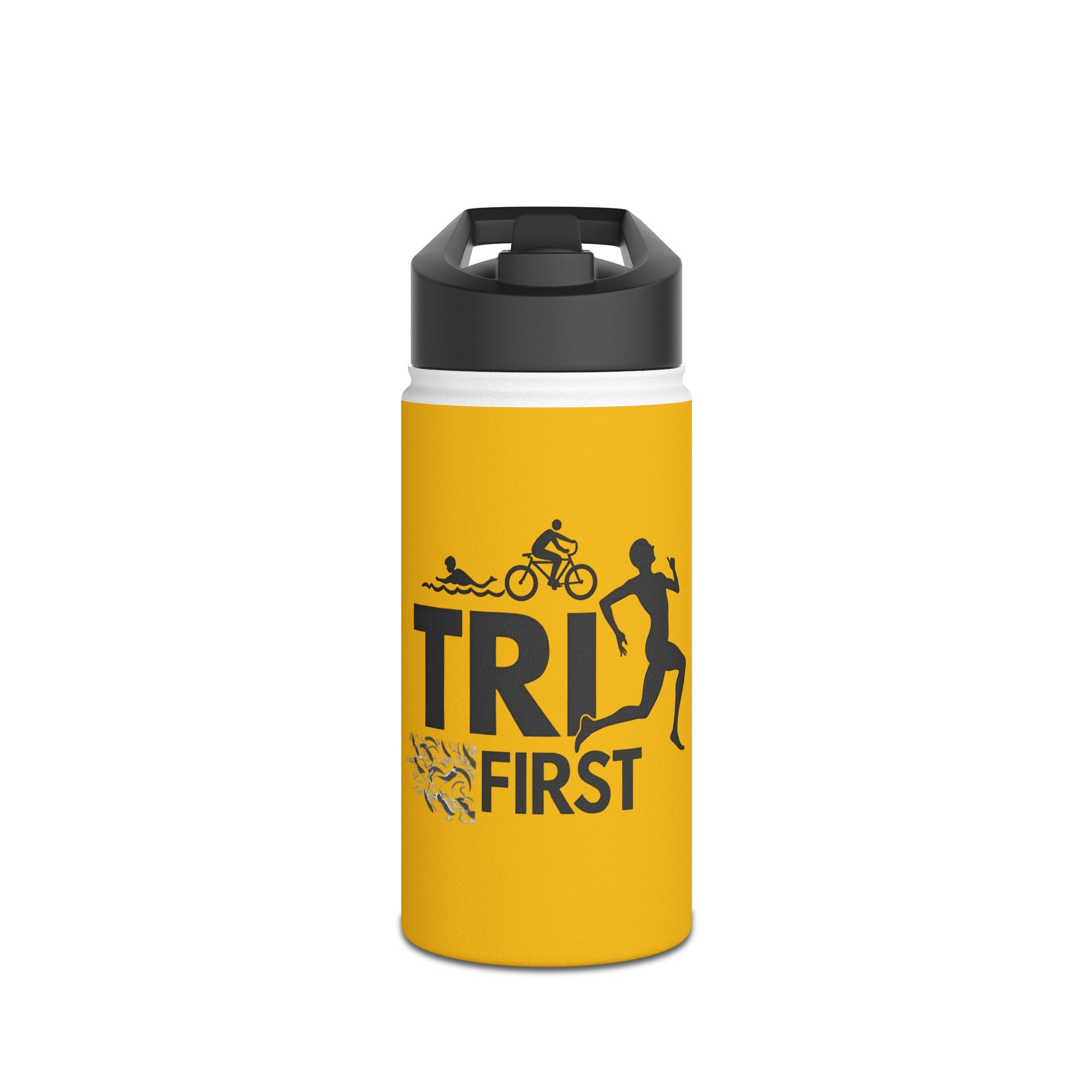 Stainless Steel Triathlon Water Bottle - Tri First Insulated Double-Wall (12/18/32oz) Keeps Drinks Cold 24H BPA-Free